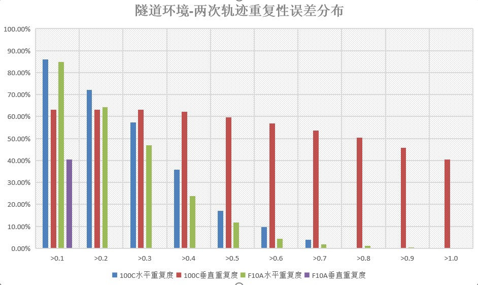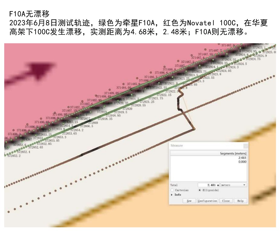 2023年某地图公司组织与国外同类型产品性能比测,包括Novatel 100C组合惯导、IE后处理软件,采集里程400km;测试环境包括:高架桥、隧道、高楼宇、城市道路等,比测结果综合性能远优于国外产品。